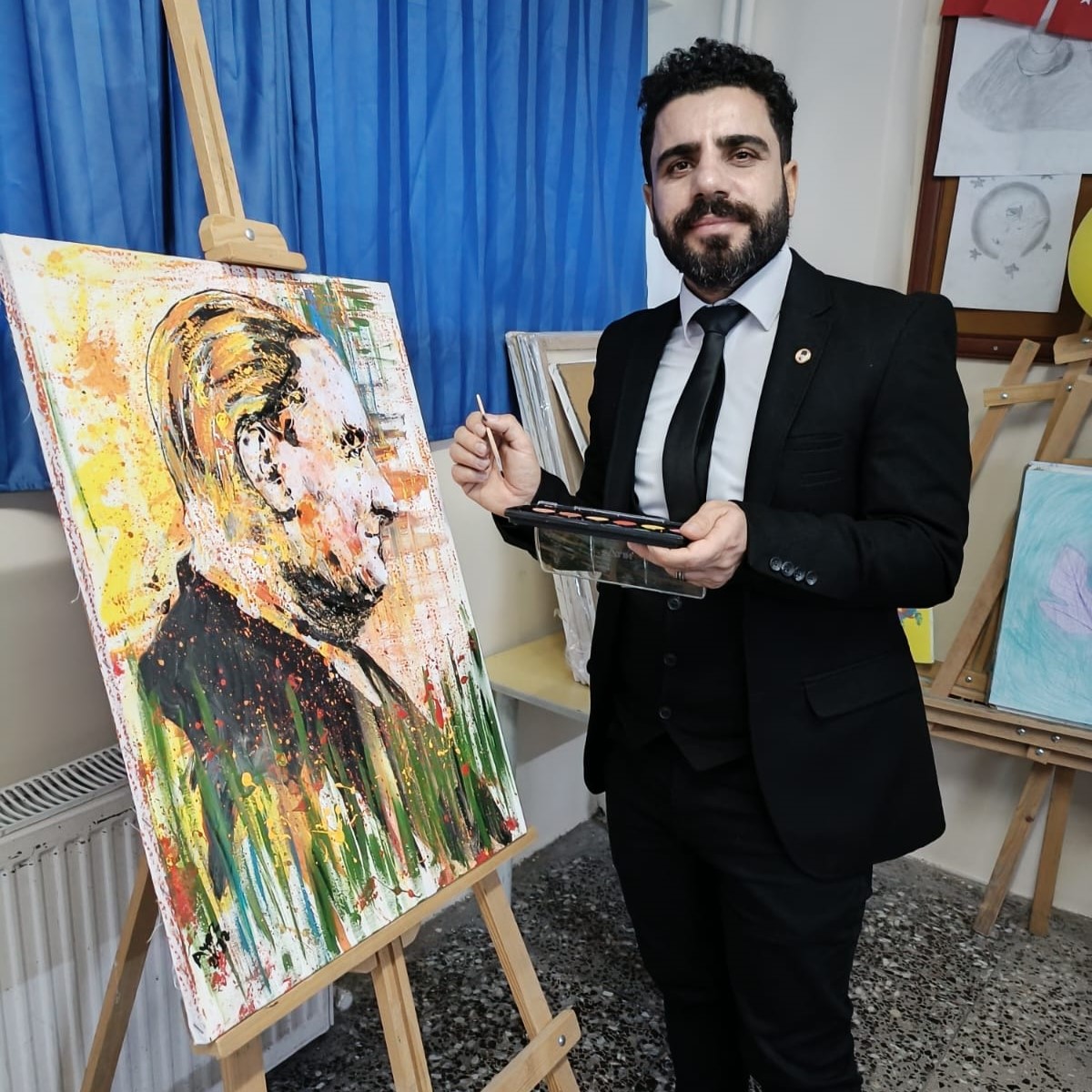 In April 2023, he arrived Dubai, (Es Dubai Language School) and started a full time English Studies diploma aiming improvement of English proficiency. While studying he continues his artistic works in the Emirates. Currently he works on his arts aiming forthcoming Arts Exhibitions in Dubai. Also, he runs his own art workshop to enhance his art skills while learning UAE history, culture and social attributes.